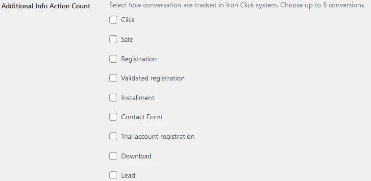 בחר עבור איזה פעולות באתר שלך לדווח על המרה בהתאם למה שהגדרת בקמפיין שלך באיירון קליק.